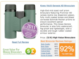 กล้องสองตาซีรีย์ใหม่ของ Kowa ที่ปรับลดราคาจำหน่ายแต่คุณภาพเลนส์ไม่ได้ด้อยลงจากเดิม ปริซึม Bak4 พร้อม KR coarting ให้ความสว่างและชัดลึกภาพมากกว่ากล้องอื่นๆในคลาสเดียวกัน ราคาถูกกว่าซื้อที่อเมริกา